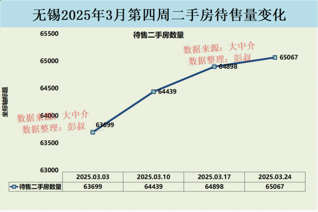 无锡楼市的待售二手房数量也在那快速增加,从3月3日到3月24日里面,无锡楼市的待售二手房数量从63699套增加到了65067套,增加的数量还是挺明显的。